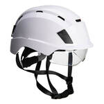 Introducing our innovative and stylish safety helmet, equipped with an integrated visor for convenient use. The visor can be easily pushed back into the helmet shell, ensuring safe stowing when not in use. With dual certification (EN 397 and EN 12492), this helmet offers flexibility and versatility with two chin strap options. The ventilated helmet shell allows for optimal airflow, providing a cooling effect during wear. Inside the shell, EPS foam enhances comfort and ensures enhanced safety.
