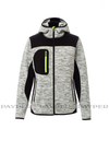 Technical sweater with black soft-shell inserts, two-tone, long taped SBS zip, shaped hood with double stitched seams, thin-edge cuffs and hem, two side pockets with zip, one breast pocket.